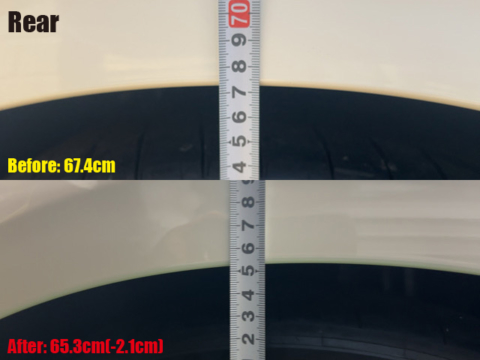 しいて言えば、リア側の方が数mmですがフロント側より下がりました。